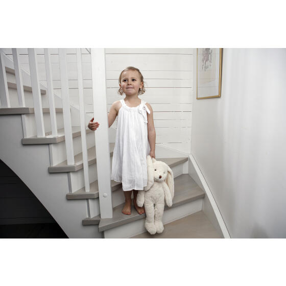 Denne bamse er lavet med tanke på fremtiden og planeten. Den er lavet af Oeko-Tex certificeret materiale og fyldet er lavet af genbrugsplast. Svea er en sød lille kanin med lange ører, som er god til at holde på barnets hemmeligheder. Den har en rigtig silkeblød pels med en lille snude af brunt garn. Vaskes ved 40 grader. Alder: +0 mdr Størrelse: 45 cm Materiale: Oeko-Tex certificeret Øjne: Broderede- Varenr.