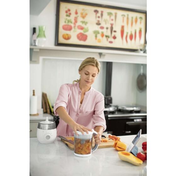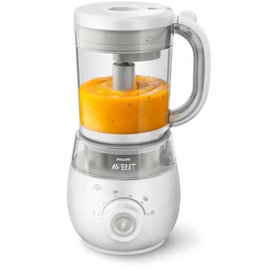 Beskrivelse Kombineret Steamer Og Blender Fra Philips Avent Lav spændene sund mad til dig og din baby. Med denne smarte 4-i-1 babyfoodprocesser kan du dampe, blende, optø og genopvarme. Lav op til 4 portioner af gangen, servér det ene barnet og put de andre i fryseren eller køleskabet til senere brug. Medfølger: Spatel, 120 Ml Opbevaringsholder, hæfte med råd og fravænning og opskrifter. Rengøring: Både glasset og blenderkniven kan maskinopvaskes, og takket være det åbne design er vandtanken nem at rengøre og påfylde, hvilket giver dig mulighed for at lave mad med ren damp ? hver gang. Et særligt bip fortæller dig, når maden er kogt til perfektion. Alt, du skal gøre, er at vende glasset, blende og servere eller opbevare til senere brug. Kapacitet til dampning, faste fødevarer: 1 Liter Kapacitet til blendning, væsker : 720 Ml. Spændning: 220-240 V. Ledningslængde: 70 Cm. App: Download app'en med råd til, hvordan du fravænner dit barn. Find nærende og lettilberedte opskrifter, der holder trit med dit barn, i takt med at det vokser. Læs trinvise madlavningsvejledninger, se sjove og informative videoer, og find mange nyttige tips og tricks til at gøre fravænningen så problemfri som muligt. Hæftet: Med hjælp fra børneernæringseksperten Dr. Emma Williams kan vi tilbyde rådgivning om fravænning sammen med velsmagende, frisktilberedte opskrifts- og måtidsidéer, så din baby kan få en sund start på livet og forberede sig på gode, livslange spisevaner.- Varenr.
