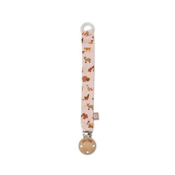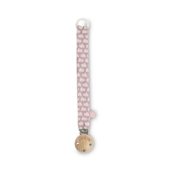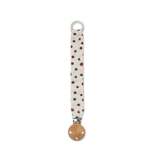Praktisk Smallstuff suttesnor med print Smallstuff suttesnoren har en rund knop af naturligt træ i den ene ende med en klemme på bagsiden, og i den anden side sidder der en silikonering, som kan sættes omkring en sut. Dimensioner: - Længde: 23 cm Fremstillet af: - Hovedmateriale: 100% bomuld - Klips: træ + nikkelfri metal - Ring: gummi- Varenr.