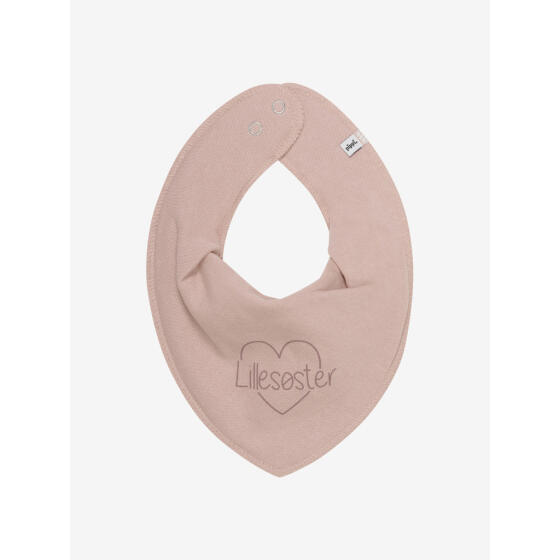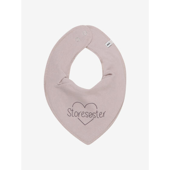 Bandana-smæk med "Bror/Søster"-print fra Pippi. Smækken lukkes i halsen med en trykknap med to indstillinger. Smækken er blød og behagelig for barnet at have på.- Varenr.