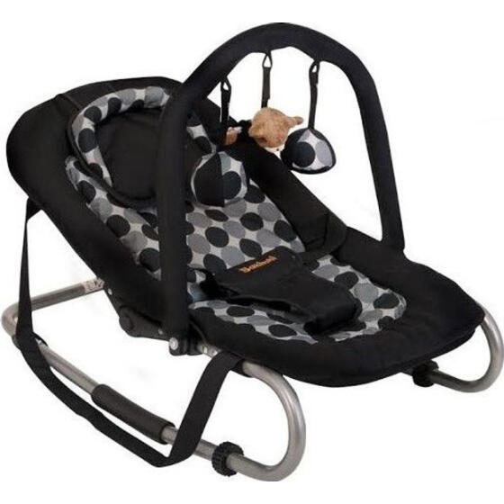 Babyer har også brug for tid til at slappe af og nyde deres omgivelser. Derfor kan de i Baninnis Classic bouncer slappe af og slappe af. Desuden har denne komfortable hvilestol en låsbar vippefunktion, der giver dit barn mulighed for at have det sjovt! Ryglænet er justerbart og kan dermed justeres efter din smag. Legebuens figurer er aftagelige. Du kan også nemt fjerne og vaske det originale betræk. For ekstra komfort og sikkerhed har Classic bouncer en blød nakkestøtte, en 3-punkts sikkerhedssele og robuste skridsikre gulvbeskyttere. Da du kan folde stolen kompakt sammen (46 cm x 55 cm x 32), kan du nemt opbevare eller bære denne trendy Baninni udsmider. Med den robuste bærerem er dette ekstra praktisk! Baninnis Black Circle Classic hvilestol er velegnet fra fødslen og kan bære en vægt på op til 9 kg.- Varenr.