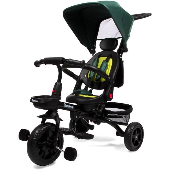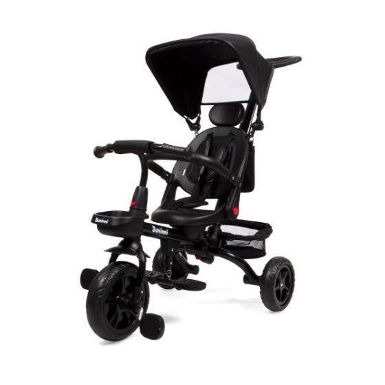 Tag på farten med Baninni Reina trehjulet cykel. Den sorte trehjulet cykel er en sjov cykel, der er egnet til alderen 1 til 5 år. Fra 1 år kan du bruge trehjulet som en skubbecykel takket være fodstøtten og den justerbare skubbebøjle . På denne måde kan dit barn se sig omkring og nyde turen uden at skulle træde i pedalerne. Når dit barn er ældre, kan du lade dem træde i pedalerne med pedalerne fastgjort til forhjulet. For sikkerhedens skyld er trehjulet med skubbebøjle udstyret med en 3-punktssele , en forreste bøjle og en justerbar solskærm . Til rejser har Baninni børnetrehjulet også en kurv foran og bagpå , ideel til at bære en lækker snack og en kold drik. Bagpå er der også en opbevaringslomme til opbevaring af deres telefon eller pung. Endelig har Reina trehjulet cykel også et 360° roterende sæde , der gør det nemt for dit barn at komme af og på cyklen, men du kan også gå med dit barn vendt mod dig. Bagpå, under kurven, er der også en fodstøtte til denne position. Trehjulet cykel med skubbebøjle Velegnet fra 1 til 5 år Maksimal vægt: 25 kg 360° roterende sæde Forreste bar Justerbar solskærm Justerbar skubbestang Fodstøtte 3-punktssele Forreste og bageste kurv Hjuldiameter: Ø 24,5 cm - Ø 18,5 cm Mål: 53 x 82 x 90-97 cm 8 kg- Varenr.