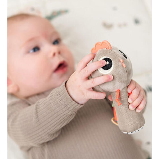 • Sensoriske elementer som en rangle og forskellige teksturer vil stimulere dit barns hørelse og taktile sans • Hanekammen fungerer som en bidering til at berolige kløende tandkød • Den elastiske løkke til en ophængsring gør det nemt at fastgøre til en aktivitetsbue eller andre produkter • Fine sandfarver med neondetaljer og kontraster for visuel stimulering • Formen og materialerne er gode som din babys første rangle • Lad en Deer friend underholde din baby Denne sensoriske rangle er designet til at engagere din babys sanser, samtidig med at den giver beroligende lindring. Med sensoriske elementer som en rangle og en række forskellige teksturer stimulerer den din babys høre- og følesans. Hanekammen kan bruges som bidering, perfekt til at lindre kløende tandkød under tandfrembrud. Den elastiske løkke gør det nemt at fastgøre ranglen til et aktivitetsgym eller andre produkter, så den holder sig tæt på. I bløde sandfarver med et strejf af neon og kontrasterende detaljer tilbyder den visuel stimulering. Formen og materialerne gør den ideel til din babys første rangle, mens Deer Friend tilføjer ekstra komfort og underholdning.- Varenr.