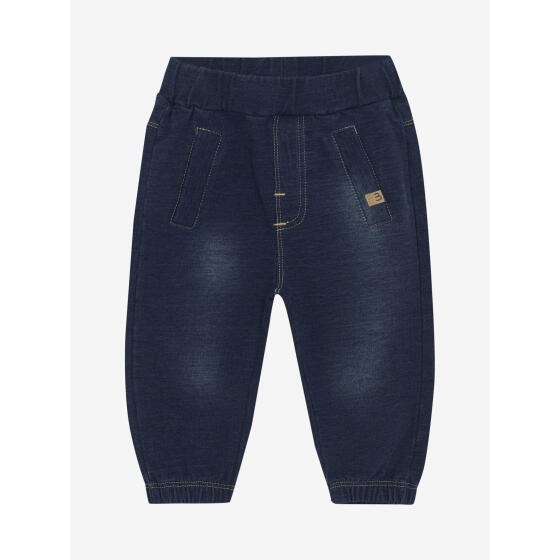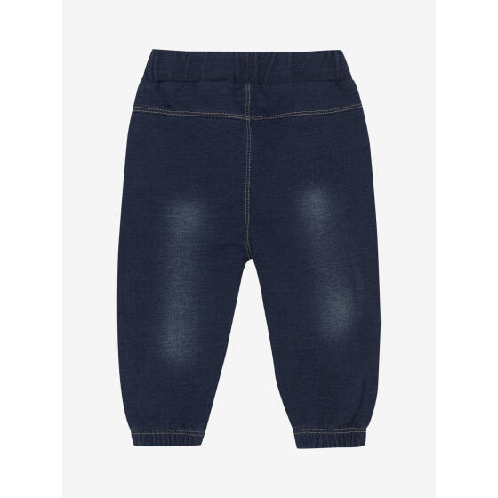 Denim joggingbukser med elastisk linning og manchetter ved anklerne, en dekorativ gylp i kunstlæder og praktiske lommer.- Varenr.