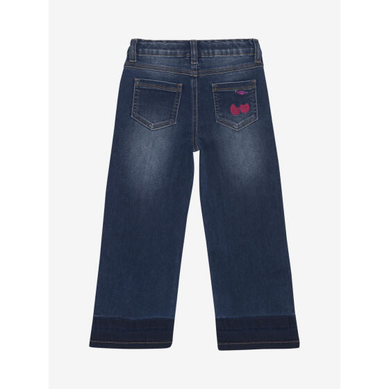 Stilfulde denimjeans med elastik og bæltestropper i taljen. Bukserne lukkes med lynlås og knap og har praktiske lommer foran og bagpå. En sød detalje er det broderede kirsebærmotiv på baglommen. Certificeret i henhold til OEKO-TEX® STANDARD 100 Cert. nr. 2276-364 DTI- Varenr.
