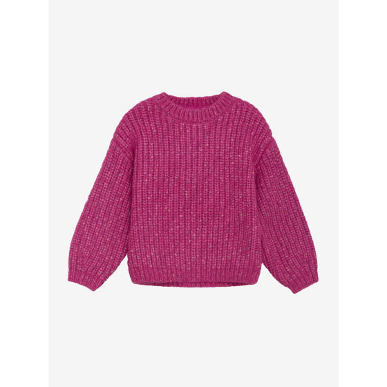 Stilfuld grovstrikket sweater med pletter, der skaber et rustikt og sofistikeret design. 61% polyester/ 33% akryl/ 6% polyamid- Varenr.
