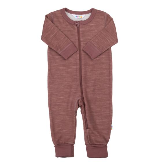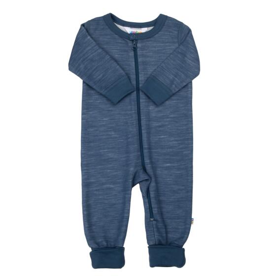 Jumpsuit fra Joha i blød uld/bambusviskose med praktisk tryllefod. Den er lavet af blød bambusviskose på indersiden mod huden og uld på ydersiden, der er varm. Dette er en uldkvalitet, der er fantastisk til sensitiv hud. Lavet af 52% merinould, 44% økologisk bambusviskose og 4% polyamid. Kan maskinvaskes på et uldprogram ved 40°C. Lavet i Europa. Certificeringer: OEKO-TEX® Standard 100 & Woolmark Wool Rich Blend.- Varenr.