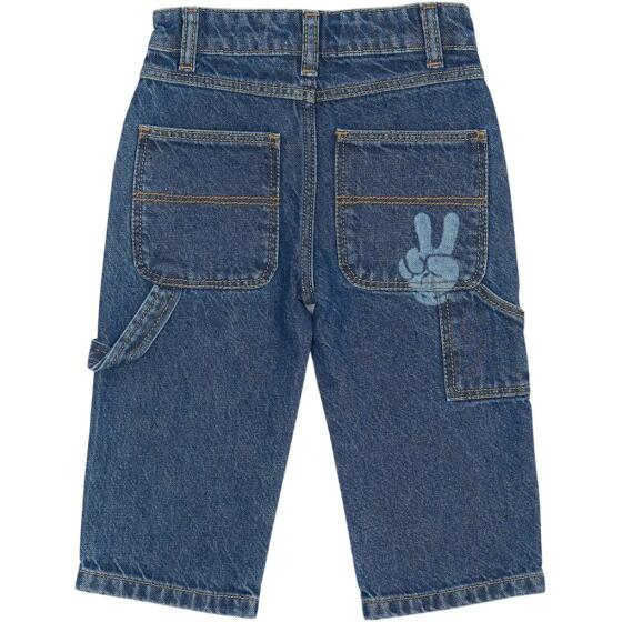 Disse jeans fra THE NEW Siblings kombinerer et klassisk denim-look med sjove og praktiske detaljer. De har både almindelige lommer og baglommer med et sjovt print af et "peace"-tegn, der tilføjer en cool og unik detalje. Derudover har jeansene sidelommer og en praktisk hammerstrop på siden for et klassisk utility-look. Elastisk talje og bæltestropper gør dem justerbare og komfortable. Perfekte til både hverdag og leg. Style dem med en t-shirt eller sweatshirt for et afslappet og cool outfit. - Detaljer bagpå. - Elastisk talje. - Bæltestropper. - Alm. lommer og sidelommer- Varenr.