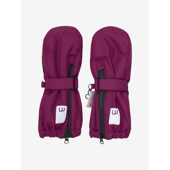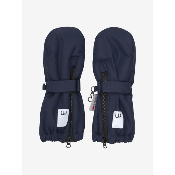 Vanter fra Minymo. Vanterne holder barnets hænder varme og tørre. Vanterne lukkes med en skjult lynlås og en velcrorem foroven. Vanterne er åndbare og vind- og vandtætte med et vandsøjletryk på 10.000 mm. Belagt med BIONIC FINISH® ECO. Certificeret i henhold til GRS - Lavet med mindre end 50% genbrugsmateriale.- Varenr.
