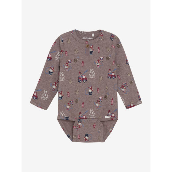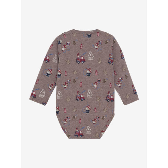 Blød og behagelig langærmet bodysuit i en strækbar kvalitet. Bodysummen har trykknapper forneden for nem påklædning og knapper i halsudskæringen for en fin detalje. Perfekt til hverdagsbrug. 90% bomuld/ 5% polyester/ 5% elastan- Varenr.