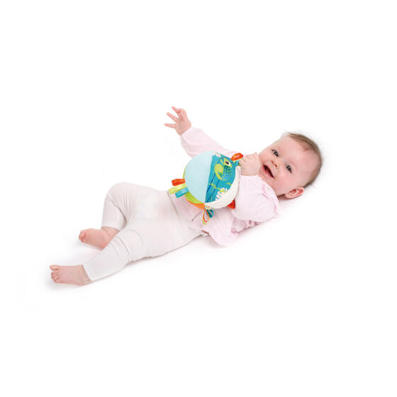 Sød og farverig aktivitetsbold Denne sjove kamæleonbold har flere bløde teksturer og flere aktiviteter som rasle papir og små bånd. Bolden hjælper med at stimulere motorik og udvikle øjen- og håndkoordination gennem leg.- Varenr.