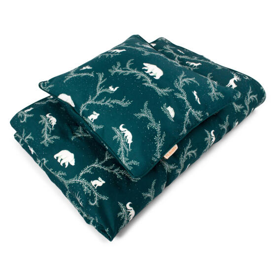 Efteråret er en magisk tid til at iagttage dyrelivet i naturen. Vores Night print inviterer dig på en tur i skoven, hvor alle vores nordiske yndlingsdyr strejfer rundt i den stjerneklare nat. Den mørke bundfarve beroliger dit barn og skaber en fredfyldt baggrund for dyrene og planterne. Vores sengetøj er produceret i økologisk satinvævet bomuld , som er ekstra blødt for din baby at ligge i. Sættet indeholder et dynebetræk med skjult lynlås og et hovedpudebetræk med kuvertlukning. Brug den medfølgende matchende mulepose til opbevaring af sengetøjet eller som en smuk taske på farten. Kort om mig: - Lavet af 100% økologisk bomuld. - GOTS organic certificeret af CERES-0300.- Varenr.