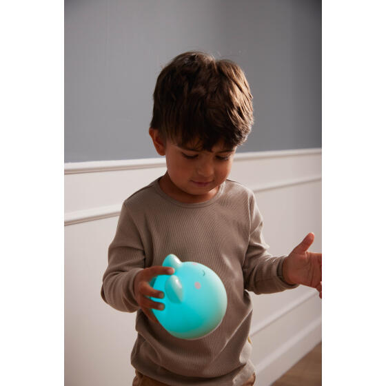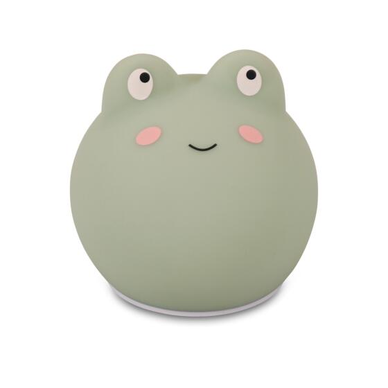 Frøen Frey er den sødeste LED-lampe i en fin støvet grøn farve. Lampen giver et varmt og behageligt lys, der skaber en hyggelig stemning på dit barns værelse ved sengetid. Lampen er også genial til puslepladsen og lyser blidt, når du ammer eller giver flaske om natten. Giv Frey et kærligt puf og han vil lyse op i mange forskellige farver. Den søde frølampe er fremstillet i blød silikone. Lampen er med LED og bliver derfor ikke varm. Natlampen har genopladelige batterier, som lades op via et USB-stik. Frey kan lyse 6-8 timer på en opladning. Frøen Frey er en del af vores interiørkollektion og er derfor ikke beregnet som legetøj.- Varenr.