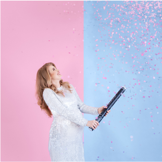 60 cm konfettirør med lufttryk Skyder konfetti flere meter op Indeholder lyserøde papircirkler- Varenr.