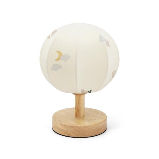 atmosfære for din lille. Med en fod i træ og en lampeskærm i blød tekstil, der fås i de fine 'Over the Moon' og 'Leaf' print, tilføjer lampen både varme og stil til ethvert børneværelse. Lampen har tre dæmpbare lysindstillinger – varmt, blandet og koldt lys – som let kan justeres med blide tryk, så du kan få den perfekte glød til sengetid. Børnelampen er udstyret med LED-lys og kan nemt oplades via USB-C kabel, så du slipper for ledninger ved natbordet. Den perfekte ledsager om natten for sødere og hyggeligere drømme for din baby.- Varenr.