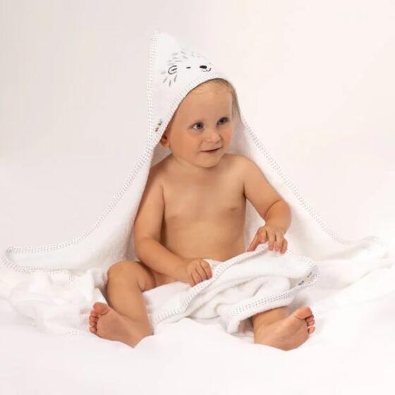 Høj absorberingsevne. Superblødt & skånsomt. Med hætte. Stor størrelse: 100 x 100 cm 100% bomuld Egnet fra nyfødt (0+ måneder) Blød & absorberende babyhåndklæde – Skånsomt mod sart hud! Dette højkvalitets bomuldshåndklæde er uundværligt fra første bad. Det absorberer hurtigt fugt og holder din baby tør og varm. Stoffet er utroligt blødt og skånsomt, så det irriterer ikke sart hud. Det løse snit giver fri bevægelighed, og det er nemt at svøbe barnet ind efter badet. Den praktiske hætte beskytter barnets våde hoved mod kulde. Med en generøs størrelse på 100×100 cm kan håndklædet bruges i mange år – fra nyfødt til småbørnsalderen. Sikkerhed & vaskeanvisning: Ikke et legetøj – Skal bruges under voksent opsyn. Hold ubrugte tekstiler væk fra børn (kvælningsfare). Vask håndklædet efter anvisningerne på etiketten for at bevare blødheden.- Varenr.