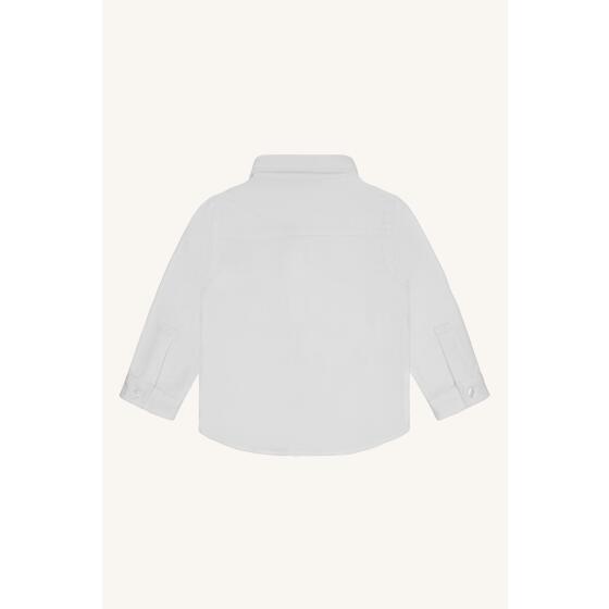 Elegant Hust and Claire skjorte i hvid med lange ærmer og klassisk krave. Skjorten har en praktisk lomme på brystet og gennemgående knapper fortil. Et tidløst design, der passer til enhver anledning. 95% bomuld (økologisk), 5% elastan- Varenr.