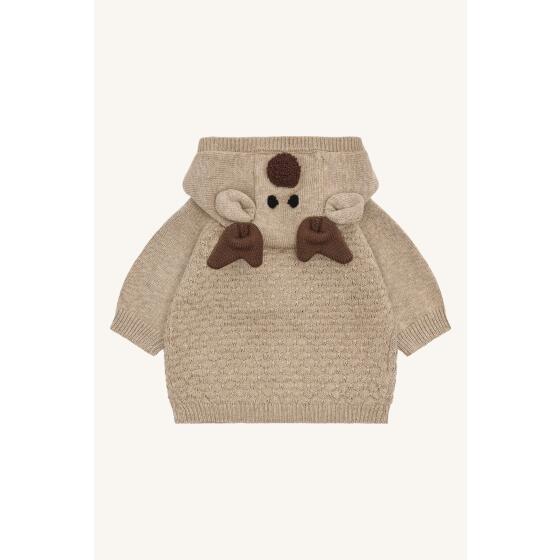 Cookie Deer Cardigan fra Hust & Claire er en blød og hyggelig strik lavet af 100% økologisk bomuld. Designet med et subtilt teksturmønster og praktiske knapper foran, er den både klassisk og behagelig, ideel til hverdagsbrug. Den vedhæftede hætte tilføjer ekstra varme og et strejf af afslappet charme, hvilket gør den til et alsidigt stykke til lagdeling gennem de køligere årstider. 100% Cotton (organic)- Varenr.