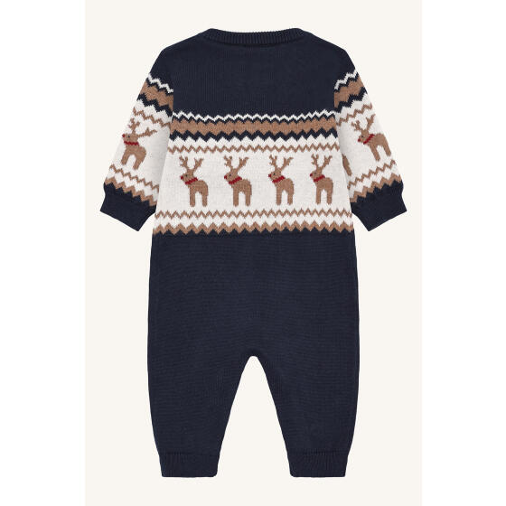 Manly Reindeer Knit Suit fra Hust & Claire er en hyggelig og festlig alt-i-en lavet af 100% økologisk bomuld. Designet med et charmerende rensdyrmønster og klassiske nordisk-inspirerede detaljer, fanger den perfekt juletidens magi. Det bløde strikstof holder de små varme og komfortable, mens knaplukningerne ved skuldrene og langs benene gør påklædning og omklædning let.- Varenr.