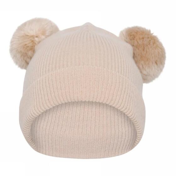 Komfortabel beanie i uld fra MPkids. Huen har foldet ribkant om hovedet for optimal pasform. Derudover har den to pomponer af fake fur på toppen. Uld er kendt for sine temperaturregulerende egenskaber, der holder hovedet varmt selv i vådt vejr og forhindrer svedlugt. Uld Hue Foldet ribkant Designet i Danmark - Produceret i Sri Lanka OEKO-TEX® STANDARD 100 CERTIFICERET Anbefalet vask: 30°C mild maskinvask. Må ikke bleges, tørretumbles, stryges eller renses.- Varenr.