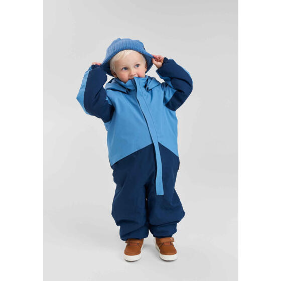 Meget varm flyverdragt til småbørn. Vand- og vindtæt beskyttelse kombineret med god isolering sikrer varm komfort. Hold dit barn varmt med den vandtætte flyverdragt Simpu til småbørn, perfekt til udendørs eventyr. Denne meget varme vinterdragt har et vandtæt ReimaTec-design med tapede sømme, suveræn isolering og er åndbart og dermed fugttransporterende. Det isolerede sæde beskytter mod kolde overflader, mens det vindtætte stof modstår vindafkøling. En justerbar, aftagelig hætte, elastiske manchetter og elastiske benender holder på varmen. En lang lynlås og glat for forenkler påklædningen, og indvendig taljejustering sikrer en tætsiddende pasform. Bemærk den ergonomiske form - denne stil er specielt designet til fuld bevægelsesfrihed. Andre praktiske funktioner inkluderer en lynlåslomme, slidstærke fodstropper i silikone og refleksdetaljer for større synlighed. Simpu holder dit lille barn varmt og tørt, så vintervejret bare kan komme an. Dette er et bluesign®-produkt, der opfylder de strenge sikkerheds- og miljøkrav i bluesign®-kriterierne: Fremstillet af bluesign® godkendte stoffer og tilbehør og produceret på en ressourcebesparende måde med minimal indvirkning på mennesker og miljø. Vandtæt materiale De vandtætte materialer er fantastiske i meget vådt vejr, ved aktiv leg og udendørsliv i kraftig regn og slud. Vandsøjle > 10 000 mm Fantastisk åndbarhed De bedste åndbare egenskaber til aktiv leg og sport. Mindst 7 000 g/m2/24 h Meget varm isolering God til vinteraktiviteter på de koldeste steder. Temperatur ca. -10 - -30 °C God slidstyrke Holdbart materiale, perfekt til hverdagsbrug. > 30 000 Martindale (sandpapir) Hovedmateriale: 100% Polyester - genanvendt, genanvendt TPU laminering Foringsmateriale: 55% Polyester - genanvendt, 45% polyester Vattering: 90% polyester - genanvendt REPREVE®, 10% Polyester - genanvendt- Varenr.