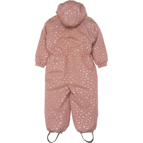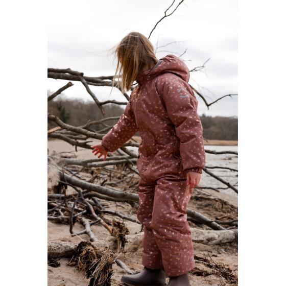 Mikk-line junior flyverdragt med et smukt folieprint og søde flæser på skuldrene. I denne kvalitetsflyverdragt kan barnet nyde udendørsaktiviteter og eventyr, mens det holder sig varmt, tørt og komfortabelt i vådt, blæsende, koldt og snefyldt vintervejr. Denne flyverdragt er lavet af genbrugspolyester og har en fluorfri belægning (BIONIC-FINISH® ECO). Den har polyesterpolstring, og hætten, de indvendige manchetter og overkroppen har blødt fleecefor. Ærmer og ben har et glat, friktionsfrit taffetafor, der er farvet med Solution Dye for at reducere vores forbrug af vand, kemikalier og energi. FANTASTISK OG FUNKTIONELT DESIGN - Farverigt kosmisk AOP (heltryk) med skinnende glitterfinish (vær opmærksom på, at dette kan falme ved hyppig brug). - Sidelommer med lynlåse til opbevaring af små skatte, snacks, handsker osv. - Blidløbende YKK-lynlås med hagebeskyttelse gør det nemt og sikkert at åbne og lukke flyverdragten. - Elastik i manchetter ved hænder og fødder for en behagelig, pålidelig og varm pasform. - Aftagelig hætte med trykknapper, der er nemme at tage af, hvis barnet sidder fast. - Placer de justerbare og slidstærke silikonestropper på foden under gummistøvlerne for at forhindre bukserne i at glide op og holde fødderne tørre. - Justerbar elastik i taljen, så den passer perfekt til barnet. - Navneskilt med plads til mere end ét navn, så lad det blive genbrugt. TEKNISKE FORDELE - Vindtæt og isolerende med fleecefor, der holder barnet varmt og beskyttet mod den kolde vind. - Vandtæt med et vandsøjletryk på 20.000 mm, hvilket kan holde barnet tørt i kraftig regn. - Tapede sømme og lynlåsdækning for yderligere vandtætning. - Åndbarhed på 5.000 g/m2/24 timer for at forhindre sved og holde barnet tørt på indersiden. - Meget slidstærkt og slidstærkt materiale (55.000 gnidninger). - Let at rengøre og smudsafvisende, hvilket forlænger levetiden, før en vask er nødvendig. - Barnet er mere sikkert i mørke takket være 3M refleksdetaljer med langdistancerefleksion. Refleksdetaljerne er placeret strategisk, så barnet er synligt fra alle vinkler. MIKK-LINE BEKYMRER SIG OM BØRNS FREMTID - Yderstoffet er lavet af genbrugspolyester. - Behandlet med BIONIC-FINISH® ECO-belægning, som er biologisk nedbrydelig og fri for PFAS/fluorider. - Certificeret af OEKO-TEX® Standard 100, som garanterer, at produktet er fri for skadelige kemikalier såsom PFAS/fluorider. - Lavet med nikkelfri knapper og lynlåse for at undgå allergier. - OEKO-TEX® Standard 100.- Varenr.