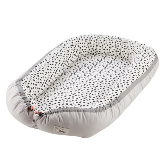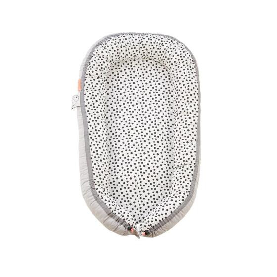 Den hyggelige baby nest (rede) giver din baby en tryg følelse i overgangen fra mors mave til at sove i barneseng. Den er perfekt til din babys første søvn i tremmesengen og i barnevognen. Du kan nemt justere størrelsen på den hyggelige baby nest, ved at trække strængerne, og du er i stand til at vende den indvendigt ud for at få et nyt, cool design. Placer altid babynesten på en flad overflade. Bær ikke din baby i den. Betræk: 100% bomuld. Oeko-Tex certificeret. Fyld: Polyesterfibre og polyether skummadras. Rengøring: betræk er vaskbart ved 40 C, må ikke tørre tumbles, madrassen kan håndvaskes. Størrelse: madras 73 x 33 cm, træk strengene for at justere størrelsen på babynesten. Alder: 0+- Varenr.
