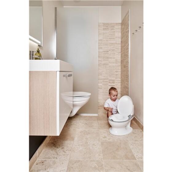 Leg bleen af med en toilettræner, der gør skiftet fra ble til toilet nemmere og sjovere. Toilettræneren ligner et rigtigt toilet med skyllelyd og plads til toiletpapir på bagsiden, så barnet får en fornemmelse af at gå på et rigtigt toilet. Toilettrænerens separate skål gør den nem at tømme og rengøre. Den skridsikre bund giver barnet en sikker oplevelse. Batterier medfølger ikke. - Potte med skyllelyd by BabyDan - Slip af med bleen, og lær dit barn, hvordan man bruger et toilet - Lydeffekter med skyllelyd som et rigtigt toilet - Aftagelig easy-clean skål for ekstra omhyggelig hygiejne - Bruger 2 x AAA batterier - medfølger ikke -Alder: 6-36 mdr Højde: 36.5 cm Bredde: 28.5 cm Længde: 40 cm Maksimal vægt: 30 Materiale: PP (Polypropylene)- Varenr.