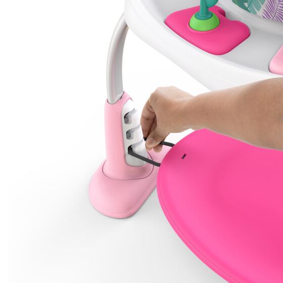 BOING! Gør dig klar til en masse hoppesjov med Bounce Bounce Baby 2-i-1 legetrampolin og bord fra Bright Starts. Du får mange års glæde ud af denne trampolin ved at lave den om til et stående aktivitetsbord til små børn (pssst ... der er også en opbevaringspose til legetøj inkluderet!). I trampolin-tilstand lader vores 3-positions højdejusterbare hoppepude baby hoppe af glæde i lige den rigtige højde. Sædeunderlaget roterer 360 ° for nem adgang til alt legetøj og aktiviteter. Den elektroniske frølegetøjsstation frembringer legende kvæklyde og spiller musik med lysende liljeplader, der glæder dit barns øjne og ører. Når babyen vokser, kan du fjerne hoppepuden og skabe et stående legebord. Udskift nemt babysædet med vores legetøjsopbevaringspose for at hjælpe med at holde orden og dit barns favoritlegetøj inden for rækkevidde. Babyer og småbørn vil elske de 7 interaktive legetøj i palme-dammen som for eksempel guldsmede-møllen og et selvopdagelsesspejl. Alder: 6 mdr+ Materiale: Polyester, plastik og metal Vaskeanvisning: Stofsæde: Vask stoffet i koldt vand. Brug et program med skånsom vask uden blegemiddel. Tørretumbling ved lav varme. Plastdele: Tørres af med en fugtig klud og mild sæbe. Lufttørrer. Nedsænk ikke i vand. Legetøjsopbevaringspose: Rengør med en fugtig klud. Lufttørrer. Brug ikke maskinvask. Batteri: 2xAA (Ikke inkluderet)- Varenr.