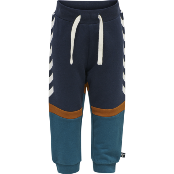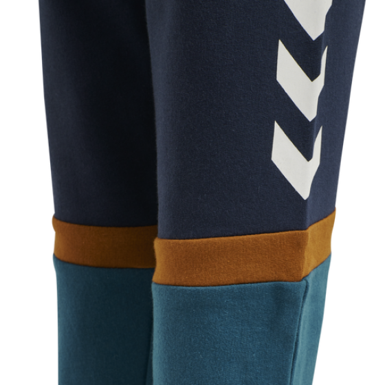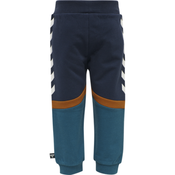 Med et colour-block design og vores signaturvinkler bringer hmlXANDER PANTS lidt farve til garderoben. Disse hummel® joggingbukser er fremstillet af økologisk bomuld med stretch, så de er super bløde og behagelige mod dit barns hud. Taljen er justerbar og har en pyntesnøre som en sød efterligning af de voksnes sweatpants. -Sweatstof -Økologisk stof -Design med farvekontraster -Justerbar talje med pyntesnøre Kvalitet: 95% bomuld, 5% elastan- Varenr.